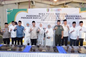 Dalam kesempatan tersebut, Gubernur Lampung didampingi oleh Ketua TP. PKK Provinsi Lampung, Purnama Wulan Sari Mirza menyerahkan tali asih dan bingkisan secara simbolis kepada yatim piatu, dhuafa, pasien dan keluarganya serta melakukan kegiatan buka bersama Civitas Hospitalia RSUDAM Dalam Rangka Peringatan Hari Jadi Ke-61 Provinsi Lampung. (Adv/Dinas Kominfotik Provinsi Lampung).
