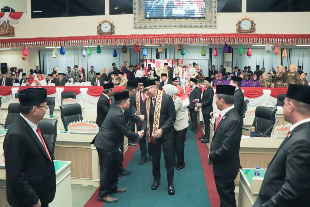 Gubernur Rahmat Mirzani Djausal dan Wakil Gubernur Jihan Nurlela menghadiri Sidang Paripurna DPRD Provinsi Lampung dalam rangka memperingati HUT ke-80 Kemerdekaan Republik Indonesia, di Ruang Sidang Paripurna DPRD Provinsi Lampung, Jumat (15/8/2025).