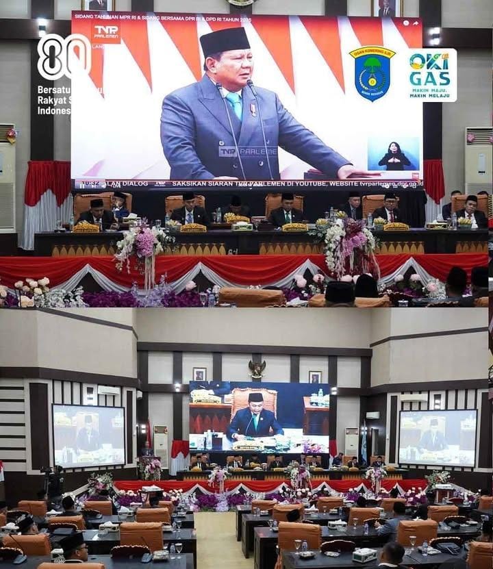 OKI Rapat mendengarkan pidato kenegaraan Presiden RI dalam rangka HUT RI ke-80 tahun 2025 yang diselenggarakan di gedung paripurna Dewan...