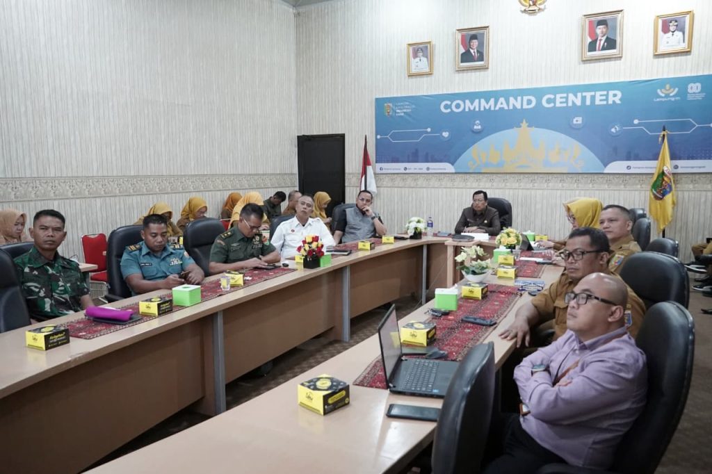 Staf Ahli Bidang Perekonomian dan Pembangunan Provinsi Lampung, Bani Ispriyanto, mengikuti Rapat Koordinasi Pengendalian Inflasi Daerah secara virtual di Ruang Command Center, Senin (19/8/2025).