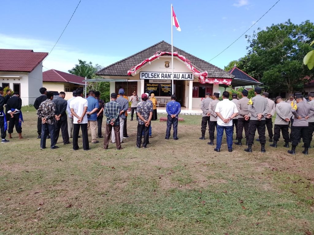 Dalam rangka menjaga keamanan dan ketertiban masyarakat (Harkamtibmas), Polsek Rantau Alai menggelar apel bersama unsur pemerintah dan masyarakat pada Senin, 1 September 2025, bertempat di halaman Polsek Rantau Alai.