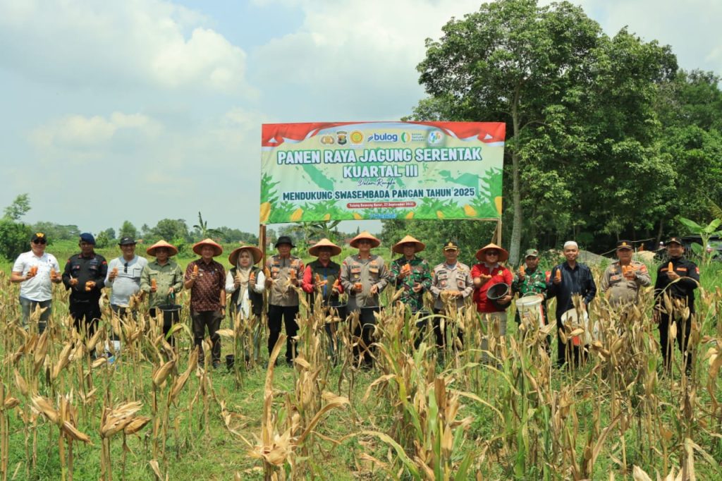 Dukung Ketahanan Pangan Nasional, Polres Tulang Bawang Barat Bersama Pemda dan Petani Gelar Panen Raya Jagung Serentak Kuartal III di Tumijajar