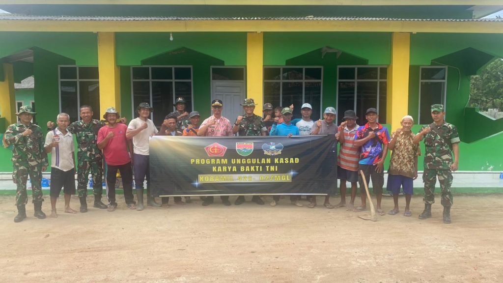 Menggala (Tulang Bawang), 24 Oktober 2025. Dalam rangka melaksanakan program unggulan Kepala Staf Angkatan Darat (Kasad) di bidang pembinaan teritorial, anggota Koramil 426-02 Manggala, Kodim 0426 Tulang Bawang, di bawah pimpinan Danramil Kapten Inf Hasin, melaksanakan kegiatan Karya Bakti di Masjid Nurul Huda, Kelurahan Ujung Gunung Ilir, Kecamatan Manggala, Kabupaten Tulang Bawang, Jumat (24/10/2025).