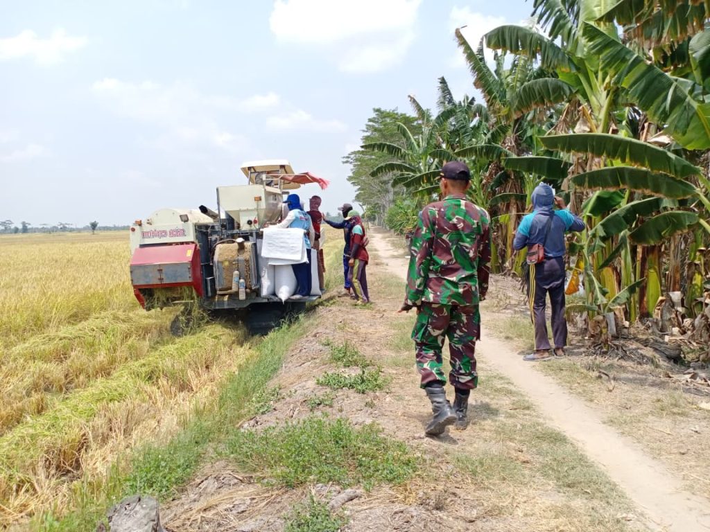 Rawapitu (Tulang Bawang) — Bintara Pembina Desa (Babinsa) Kampung Gedung Jaya, Kecamatan Rawapitu, Kabupaten Tulang Bawang, Sertu Amroni, turut mendampingi para petani dalam kegiatan panen di wilayah binaannya.