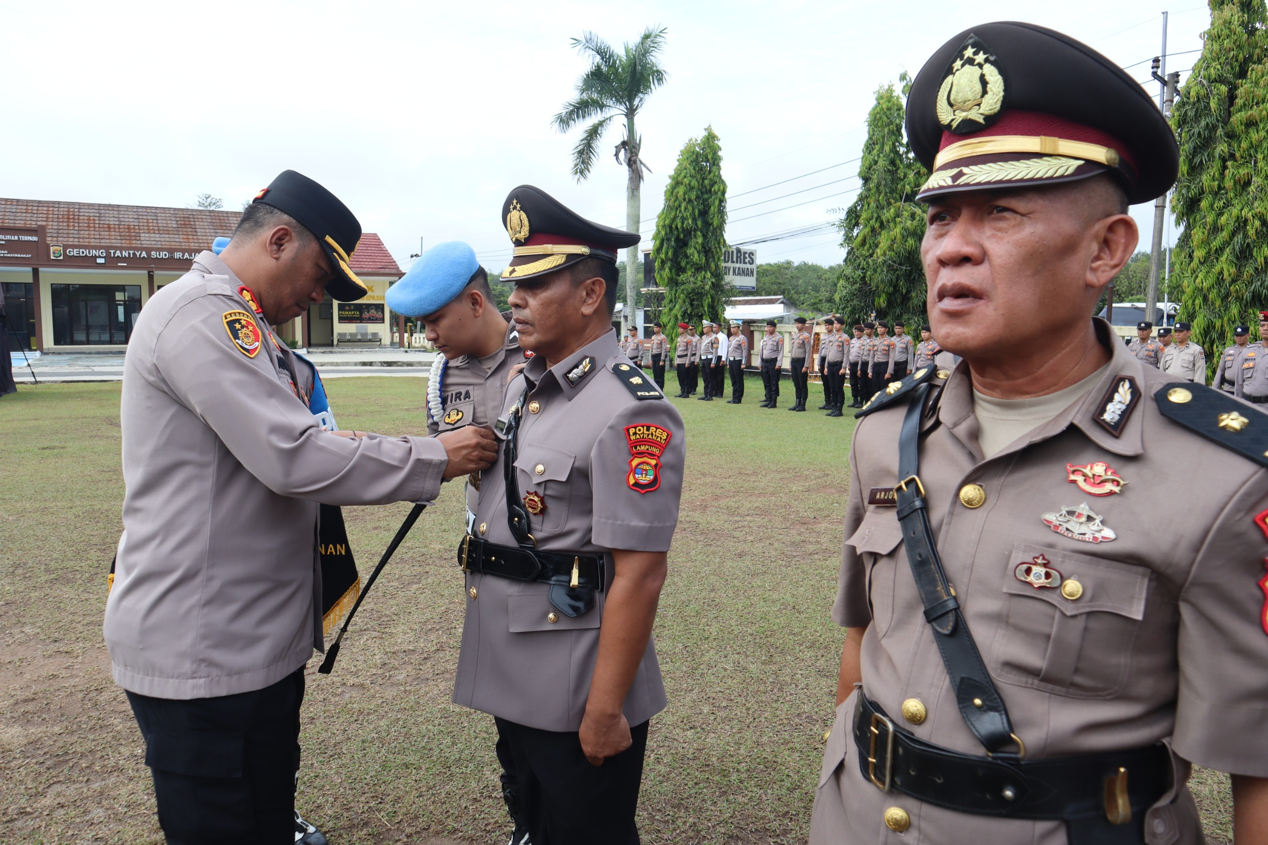 Polres Way Kanan Gelar Upacara Sertijab Kabaglog, Kasipropam, Kasikum, Kapolsek dan Pelantikan Kasatreskrim