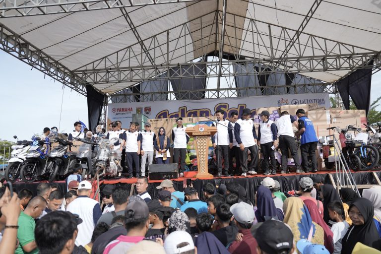 Infoberitanasional.my.id Tulang bawang Tanjung Raya (Mesuji) -- Komandan Kodim (Dandim) 0426/Tulang Bawang Letkol Inf Syurya Dharma menghadiri kegiatan Jalan Sehat...