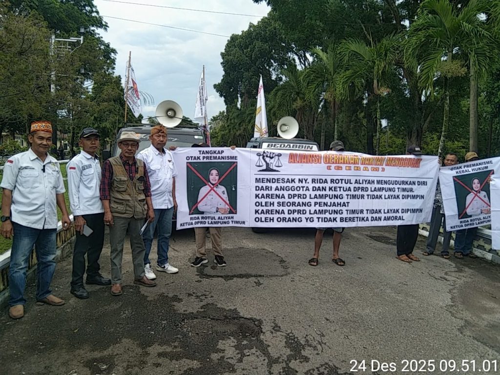 Masyarakat Lampung Timur yang tergabung dalam Aliansi Gerakan Rakyat Menggugat (GERAM) melakukan Aksi Damai di Polres Lampung Timur dan DPRD Lampung Timur. 24/12/2025.