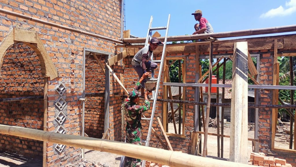 Praka Hardian Babinsa 426-05 PA Terjun Langsung Gotong Royong Bantu Warga Binaan Pengecoran Talang Rumah