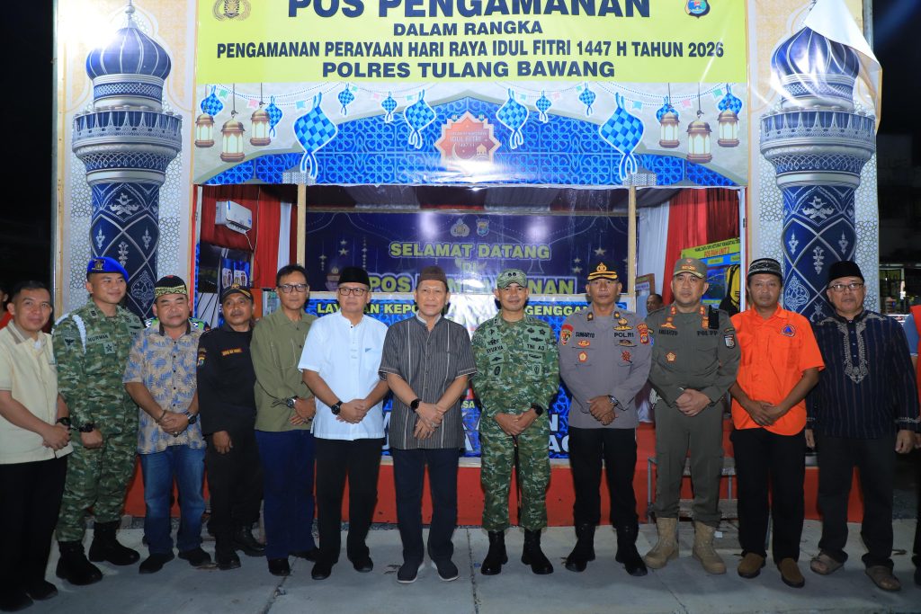 Dalam rangka memastikan kesiapan pengamanan arus mudik Hari Raya Idul Fitri 1447 H/2026 M, Komandan Kodim 0426/Tulang Bawang, Letkol Inf Syurya Dharma, bersama Forkopimda melaksanakan peninjauan langsung ke Pos Pantau Arus Mudik Lebaran di wilayah Kabupaten Tulang Bawang dan Mesuji, Kamis malam (20/3/2026).