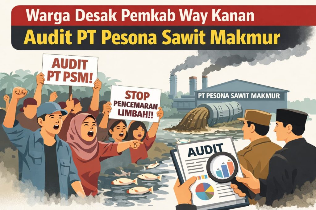 Masyarakat di Kecamatan Blambangan Umpu, Kabupaten Way Kanan, semakin lantang menyuarakan desakan kepada pemerintah daerah untuk segera melakukan audit menyeluruh terhadap operasional PT Pesona Sawit Makmur (PSM). Perusahaan pengolahan kelapa sawit tersebut dinilai telah menimbulkan keresahan akibat dugaan berbagai persoalan legalitas.