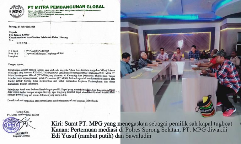 Sorong Setelah ramai pemberitaan terkait sengkarut kapal tugboat yang sandar di Mapolda Papua Barat Daya, yang beroperasi sebagai galangan kapal...