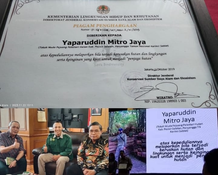 Sumbar Aktivis pencinta hutan asal Kabupaten Pesisir Selatan (Pessel), Yapparudin MJ, yang mendapat undangan dan penghargaan dari Kementerian Lingkungan Hidup...